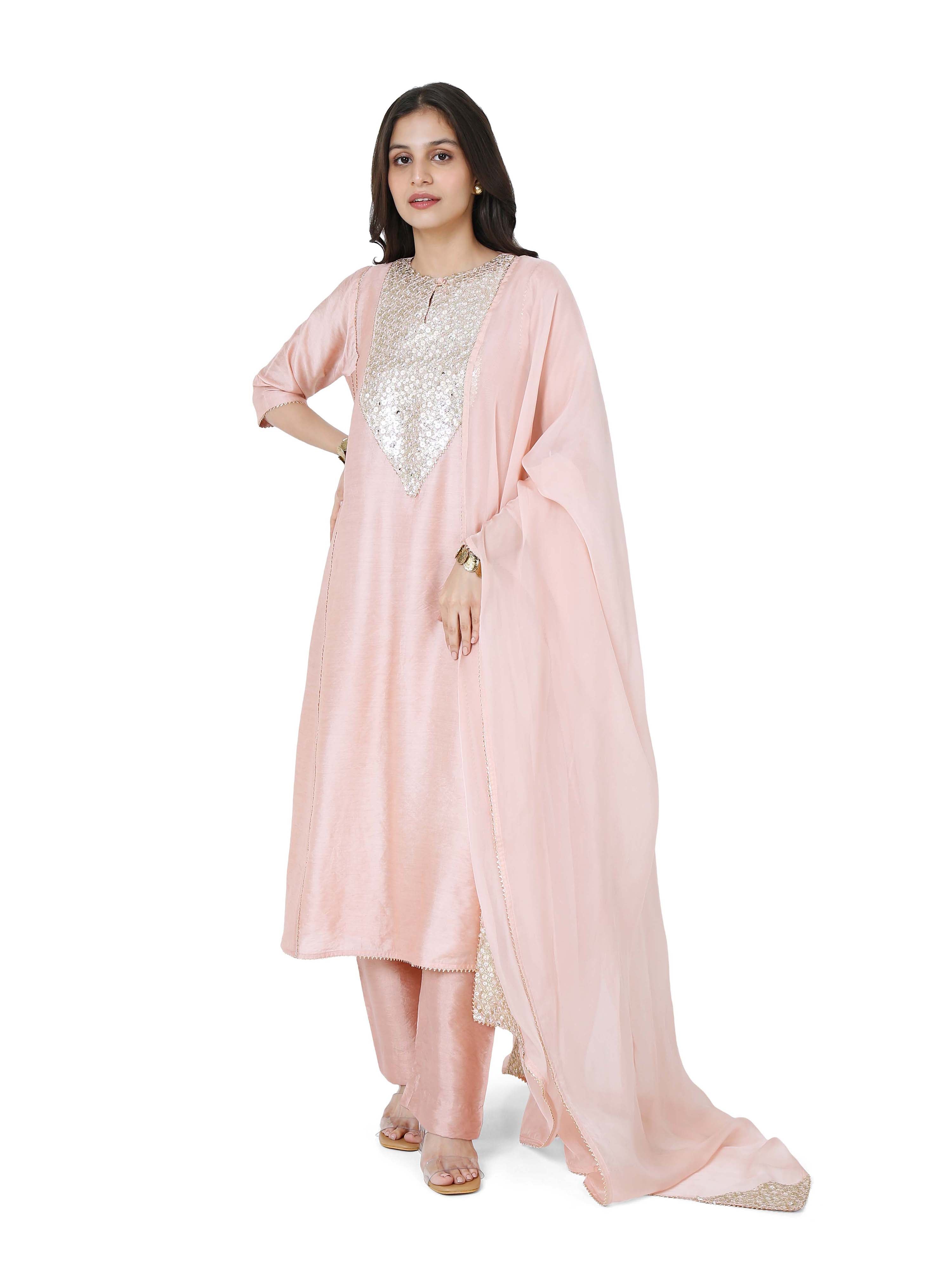 Composition: Chanderi Kurta, Art Silk Pant, Santon Lining, Tissue Dupatta