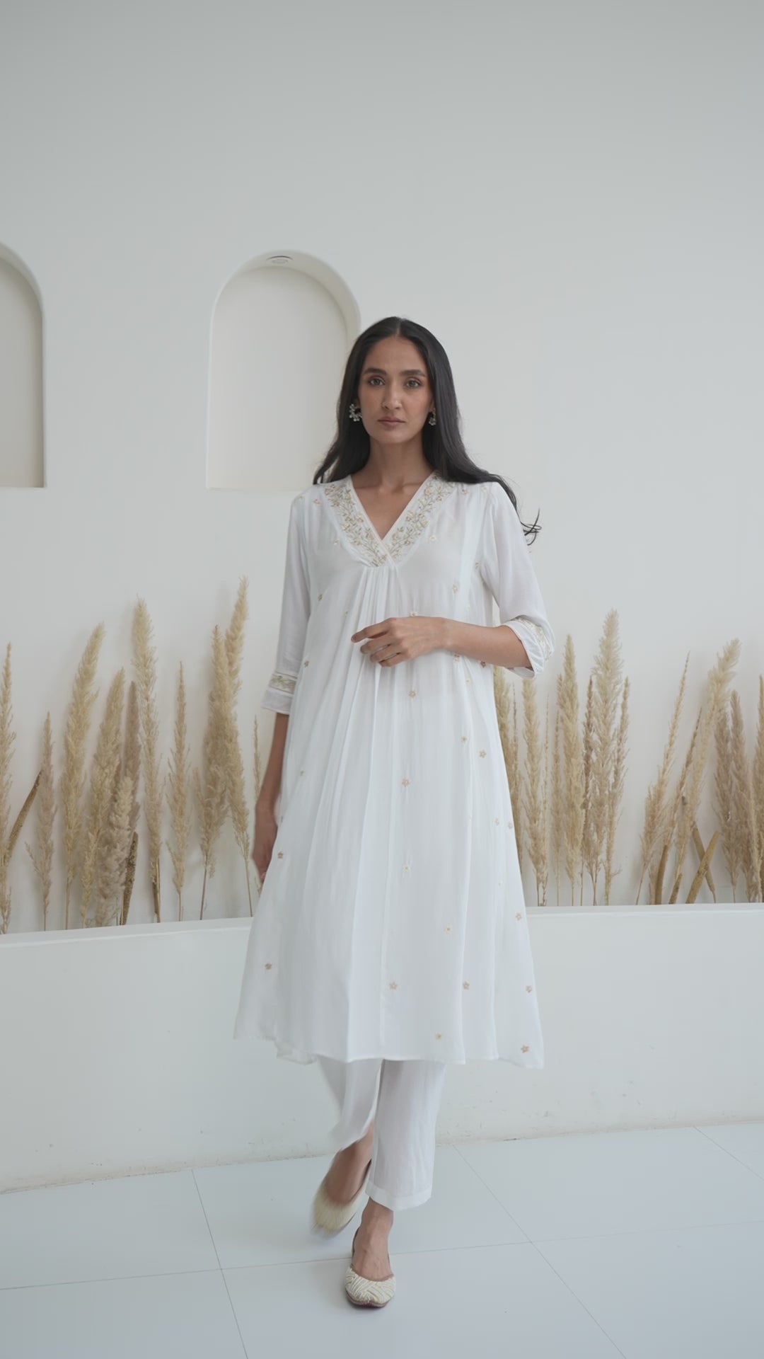 Pristine Beige Satka Net Dupatta with a delicate drape. Can be paired with Sheer Daisy Kurta Set.