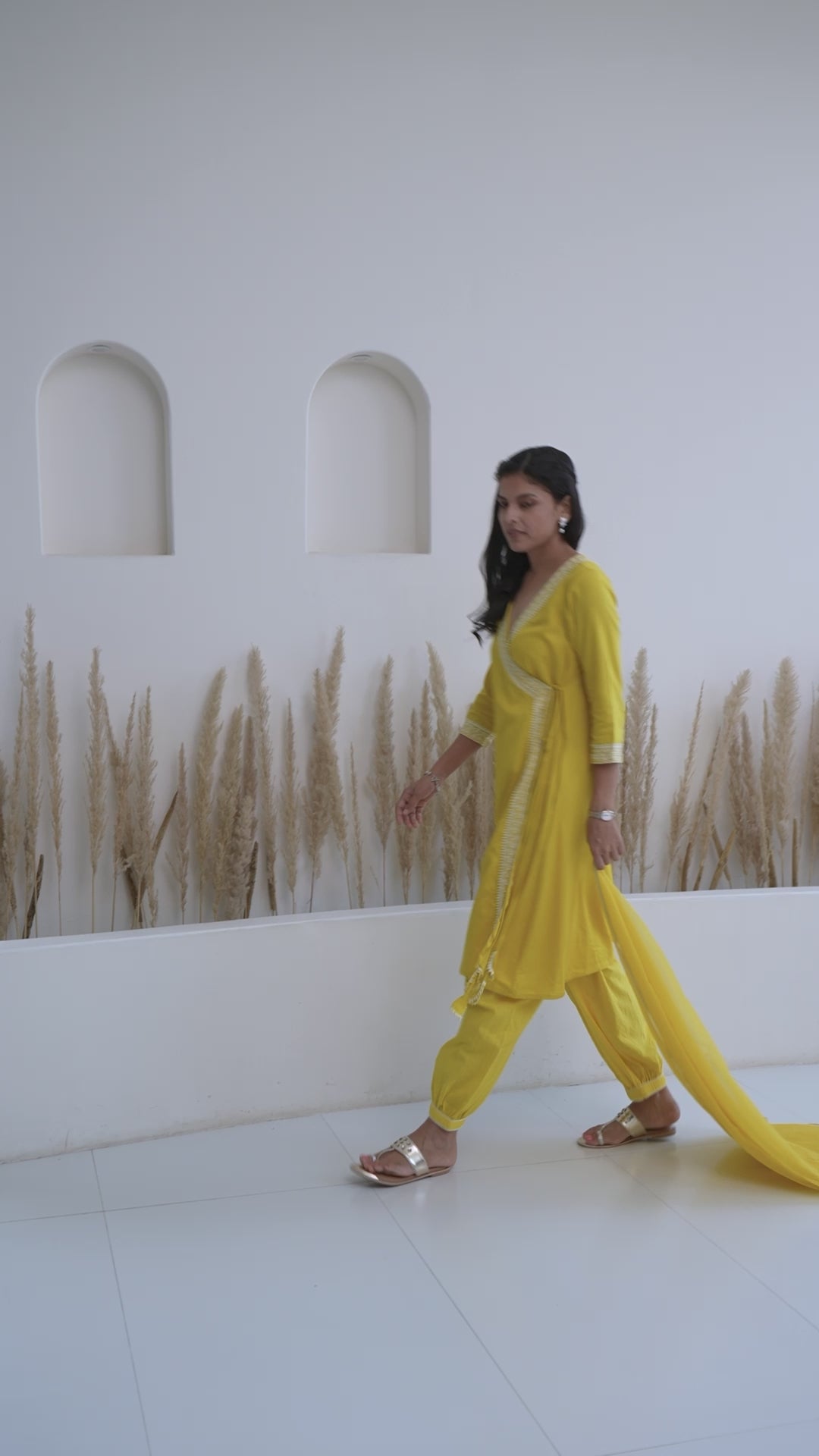 Blazing Yellow Satka Net Dupatta with a delicate drape. Can be paired with Vibrant Daffodil Kurta Set.