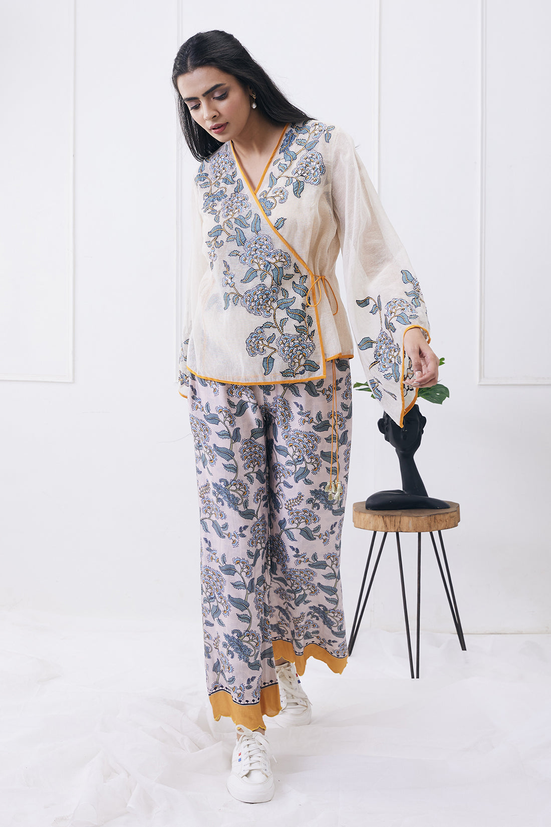 Yasmin printed overlapped top with pants